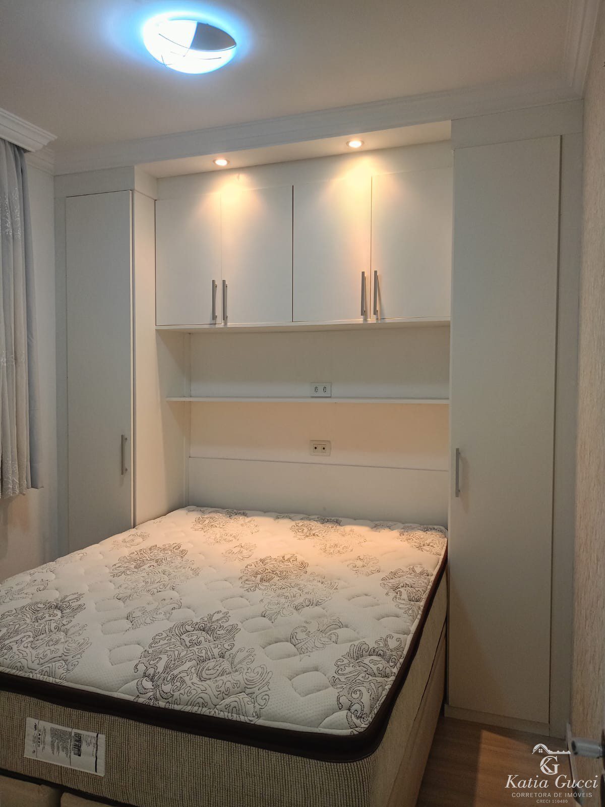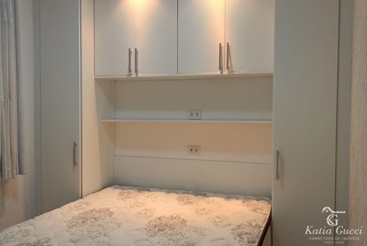 Dormitórios: 02 quartos aconchegantes com armários planejados, cama e piso laminado de alta qualidade.