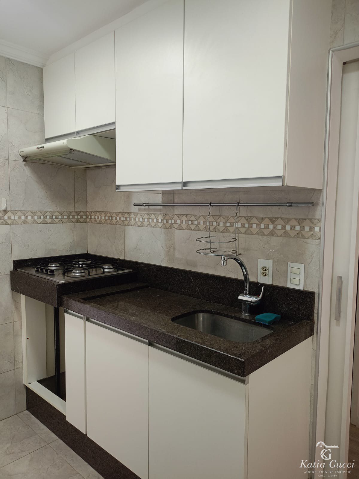 Cozinha Planejada: Repleta de armários e equipada com cooktop, coifa e forno.