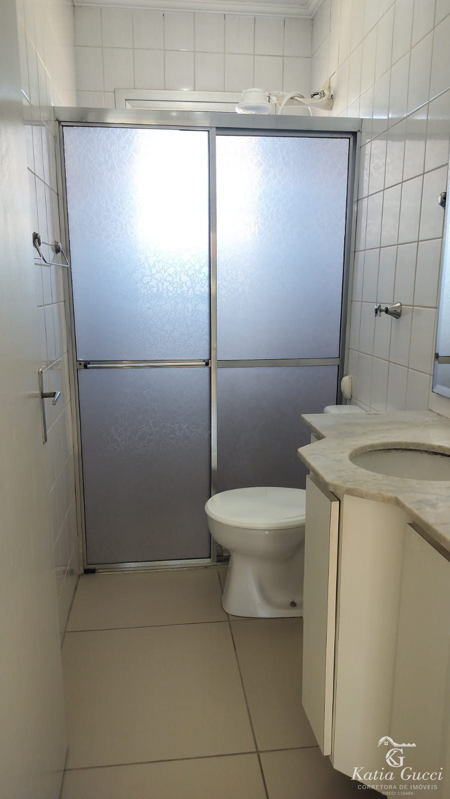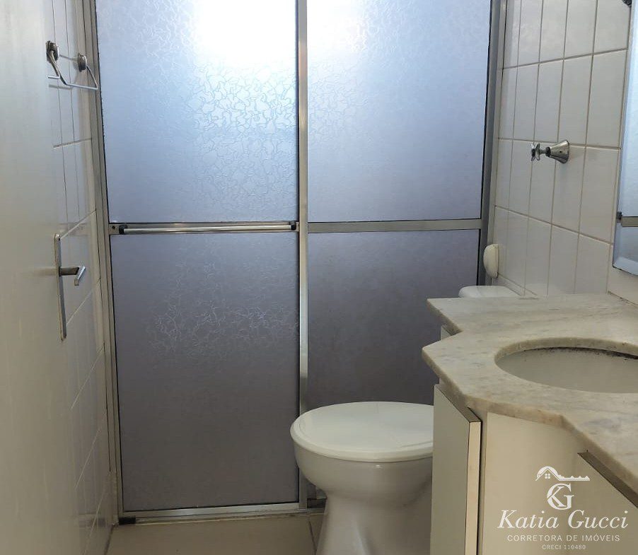 - Banheiro com box de vidro e armário